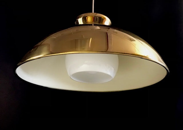 Bergboms Ceiling Lamp, Sheet Metal, Glass (Sweden, 1960s/ 1970s). Inner glass shade.