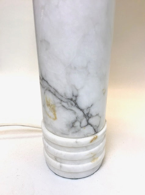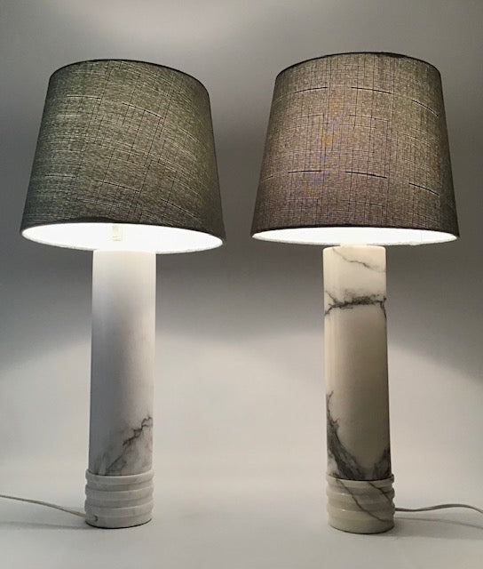 A beautiful pair Swedish table lamps in solid white Carrara marble.